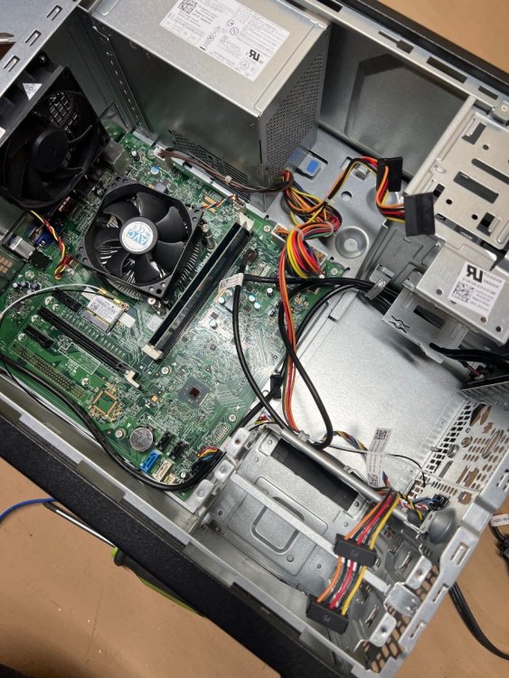 i didn’t have peripherals to set the machine up and do the initial boot and stuff like that, and instead of buying cheap crap on Amazon, I decided to buy cheap crap locally at a computer store that takes electronic recycling and refurbishes and sells some of it. Got a keyboard and mouse, and decided to see if they could upgrade the 8GB RAM that was in the Dell. They had a nearly-matching 16GB upgrade kit for me, so I decided to pull the trigger on the $17 for that.