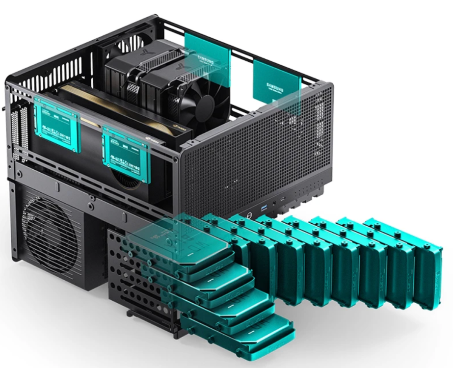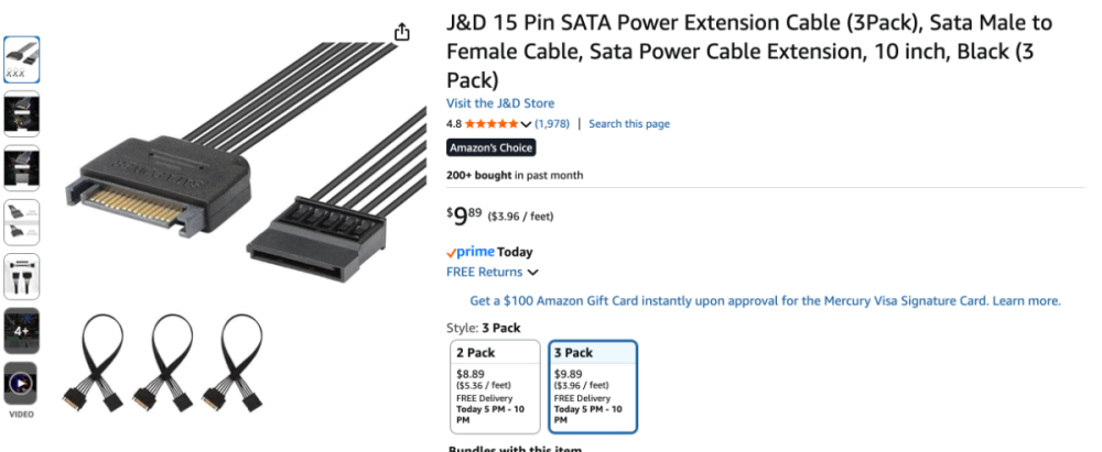 i was able to mount 6 - 2.5" drives where jonsbo only recommended 4 In the product images for the n5 case they show 2.5" drives being mounted with the long side horizontally i ended up mounting them with the long side vertically and having the connectors on the bottom of the case. it was definitely a tight fight for sure and while i was able to get it to work with standard non angled cables, i will highly recommend left angle sata cables like the ones included in the image below. The other issue i had was that i ran out of screws for the ssd mounting. i think jonsbo gave enough for 5 ssds (the 4 they intended you to mount and 1 more incase you lose screws) At first the only screws i could find freely slid left and right on the mounting rails without me even noticing. I can imagine if i didn't notice the klinking and clanging it would inevitably cause would drive me nuts. Eventually i found 2 screws that worked perfectly in my stash of screws from the various pc cases i have bought. My 7th 2.5" ssd got the short end of the stick and was vhb taped to an empty area. the power supply situation gave me so many headaches. I couldn't decide between an 850w or a 1000w psu. pcpart picker estimated my wattage above 850w but my math didn't match theirs i couldn't find a lot of what was available on the best psu list the ones i could find didnt have enough sata power ports I also did not want to use molex to sata adapters or vice versa for risk of fire or damaging components chatpt essentially told me it was a bad idea eventually i was enticed by a psu not on the list but i guess a step up from one that did decently on the list The Super Flower LEADEX VII Platinum PRO 850 W which had a TWELVE sata power ports. i was torn between the 850w and the 1000w versions of that psu and the prices were only $10 apart when i first looked. they both even came with super flower's high performance megacool fans (that are as loud as jet engines) when it was finally time to bite the bullet the 850w psu price dropped by another $20-30 and the bonus fans that came with the 1000w changed to something that was less desirable to me. The reduced price, more desirable fans and my own math showing 850w was enough to convince me to get the the 850w psu. A cool feature that i previously thought was a gimmick is that on the psu end almost every connection uses a universal plug. This lets your buy more sata power cables in case you want use the psu in a case that can fit even more hdds. A psu with enough sata power connections was only one of my problems, another was that my sata cables were too short. even with creative routing of cables i just was not able to connect 2 of my sata power cables. i reluctantly had to purchase sata cable extensions. in hindsight i could have just bought 1 or 2 more of the universal sata cables and route them where i need them but i was near the end of my build and really didn't want to pull out the psu again. Also finding the right cables would be a risk too if done wrong. Im sure i have more to comment on but these days no time to sleep or think with the overtime shifts this darn server forced me to take 😅 next part to come eventually