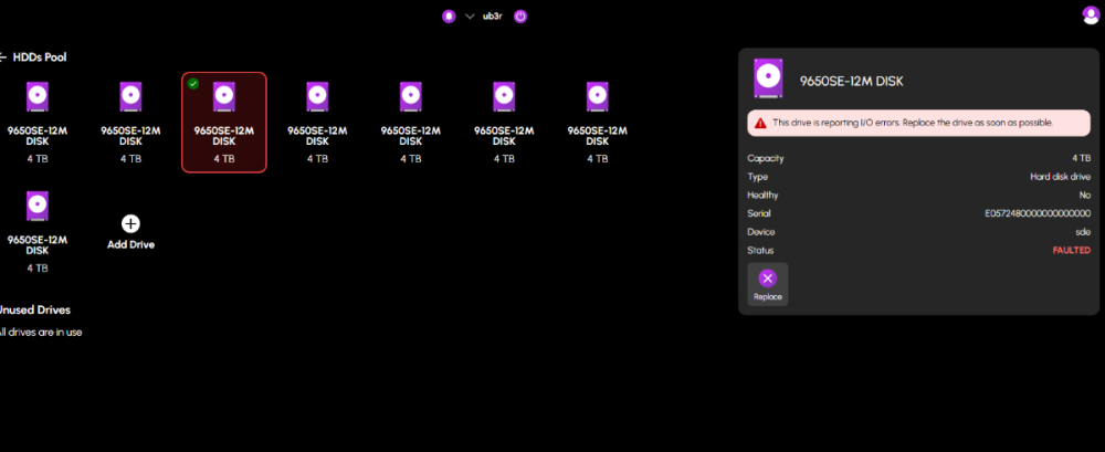 Is there a standard way to replace a drive in HexOs yet ? I know in Truenas I can out the drive and replace it in the pool but I am unsure if there is way it should be done in Hex. Yes I know we are still in beta mode and this may not have been addressed yet but figured I would ask the question