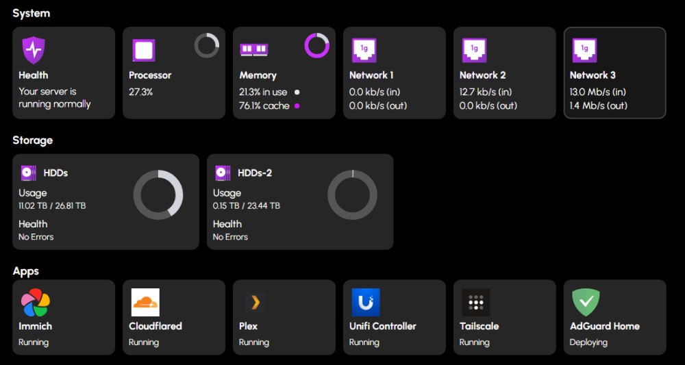 So a bit if a update, I have been fighting this all week, I isolates the dead drive in truenas , stopped and outted the drive . allowed the system to resilver then put in a new drive to make a hot spare and everything was running smooth. The next day is when all the goofy stuff was going on with the deck so I cam home and started making back ups for truenas ect. went to bed and everything was working well. While at work the following day I started getting notifications from Up time robot telling me that the links going to my hexos was down . Logged into the deck and server not online. After some trouble shooting I had found that I no longer had tailscale access nor could i ping it from any internal computer. Got home and got into the truenas interface and rebooted the server. Once I gained UI access it showed it was trying to resilver the pool again, not thinking about I let it ride out. Well it was stuck at 18% silvering for 2 days so I started to try and delete the array and start over "just move all my data back." AND now I am at a point where im just going to rebuild the OS and all because the only access that I have is Truenas interface