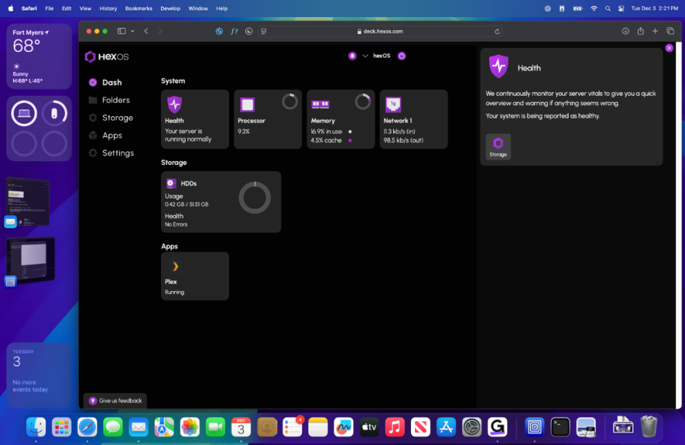 • App Installation: Apps were added via the TrueNAS interface because the HexOS installation was failing at 60%.