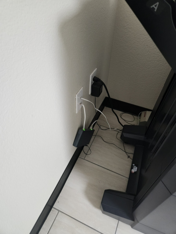 the printer hated the auto poe ports just made a small patch cable been sitting like that for a few years now in a production setting and yes thats a pots line above