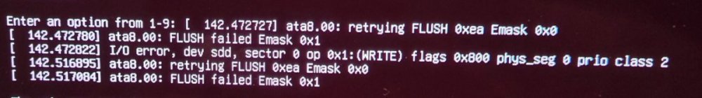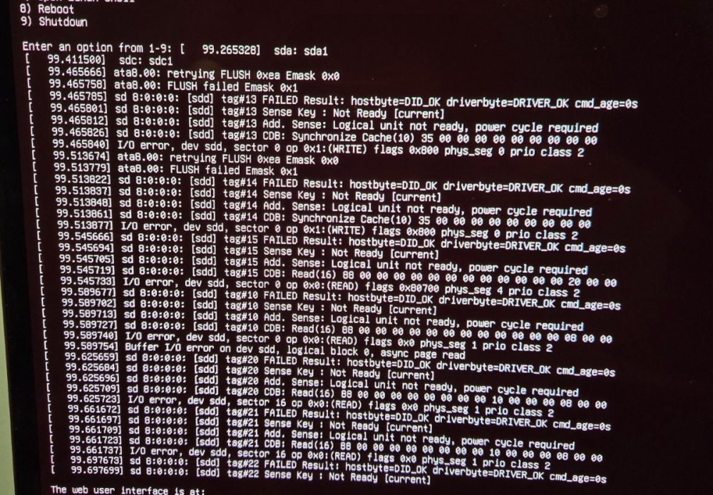 3. first two drives wiped third drive did not and failed with output seen here Traceback (most recent call last): File "/usr/lib/python3/dist-packages/middlewared/job.py", line 488, in run await self.future File "/usr/lib/python3/dist-packages/middlewared/job.py", line 533, in __run_body rv = await self.method(*args) ^^^^^^^^^^^^^^^^^^^^^^^^ File "/usr/lib/python3/dist-packages/middlewared/schema/processor.py", line 179, in nf return await func(*args, **kwargs) ^^^^^^^^^^^^^^^^^^^^^^^^^^^ File "/usr/lib/python3/dist-packages/middlewared/schema/processor.py", line 49, in nf res = await f(*args, **kwargs) ^^^^^^^^^^^^^^^^^^^^^^^^ File "/usr/lib/python3/dist-packages/middlewared/plugins/disk_/wipe.py", line 187, in wipe await self.middleware.run_in_thread(self._wipe_impl, job, dev, mode, event) File "/usr/lib/python3/dist-packages/middlewared/main.py", line 1364, in run_in_thread return await self.run_in_executor(io_thread_pool_executor, method, *args, **kwargs) ^^^^^^^^^^^^^^^^^^^^^^^^^^^^^^^^^^^^^^^^^^^^^^^^^^^^^^^^^^^^^^^^^^^^^^^^^^^^ File "/usr/lib/python3/dist-packages/middlewared/main.py", line 1361, in run_in_executor return await loop.run_in_executor(pool, functools.partial(method, *args, **kwargs)) ^^^^^^^^^^^^^^^^^^^^^^^^^^^^^^^^^^^^^^^^^^^^^^^^^^^^^^^^^^^^^^^^^^^^^^^^^^^^ File "/usr/lib/python3.11/concurrent/futures/thread.py", line 58, in run result = self.fn(*self.args, **self.kwargs) ^^^^^^^^^^^^^^^^^^^^^^^^^^^^^^^^^^ File "/usr/lib/python3/dist-packages/middlewared/plugins/disk_/wipe.py", line 97, in _wipe_impl os.fsync(f.fileno()) OSError: [Errno 5] Input/output error
