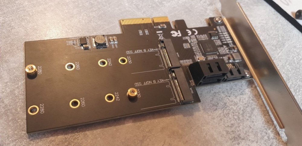 Unless I've misunderstood, this just raises more questions for me. There is no mention of SATA connectivity on the product page, so where would you be connecting that? Does the m.2 slot on the board exist? How do the 4 m.2 slots on the expansion board connect? Can you share a link to the teardown video you found please?