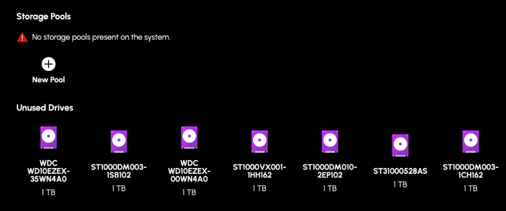 I originally installed 3 old 1TB HDD which managed to work fine as a pool.