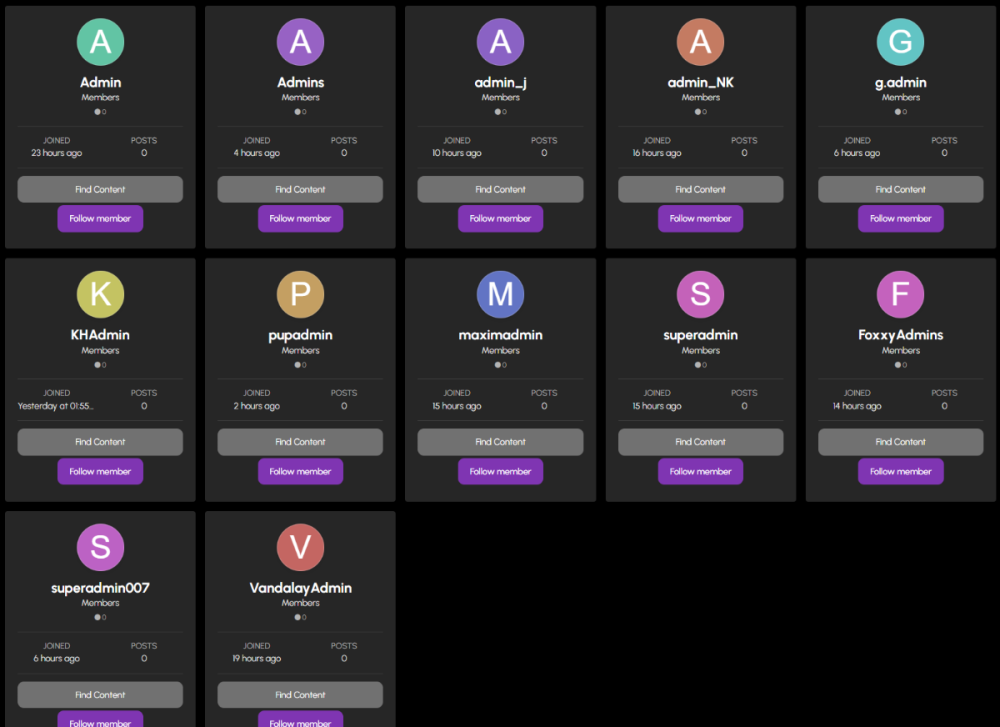 There are a decent number of users with 'Admin' within their usernames, This can be used to exploit other users of the forum in to mistaking that the individuals are a staff member.